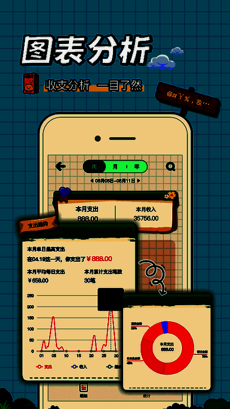 除了基础记账功能外,团团记账还能将你的财务数据以图表形式清晰呈现,帮助你更直观地了解月度、年度支出趋势。同时支持账单分类分析,用户可自定义标签,精准掌握每一笔钱花在哪里,从而优化消费结构,实现健康理财。