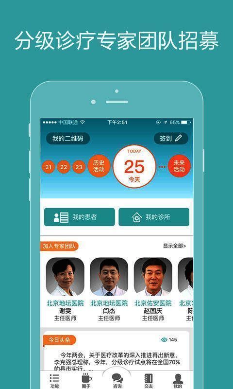 除了分级诊疗功能,软件还提供线上诊所服务,医生可自由设定服务价格、时间及形式,无需实时在线,避免工作干扰。医生圈子模块则打造了一个集再教育、学术交流和手术直播于一体的视频社区,助力医生持续学习与专业成长。