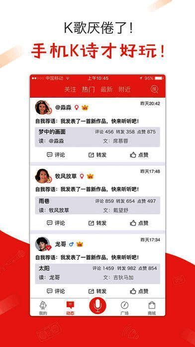 《全民K诗》作为一款专注于诗歌朗诵的移动应用,为喜爱诗词文化的用户打造了一个独特的互动平台。在这里,用户不仅可以阅读到丰富的经典诗歌作品,还能通过创新的“K诗”模式,体验与传统K歌不同的文化娱乐方式。无论是选择喜欢的背景音乐诵读诗歌,还是与其他爱好者在线PK切磋,都能让你感受到文字与声音结合的独特魅力。