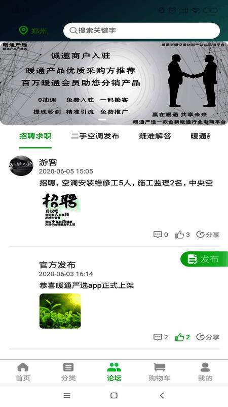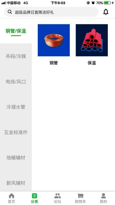 进入《暖通严选》首页,用户可直观查看各类供暖设备及生活用品。平台设有精细化的商品分类系统,便于快速查找目标商品。用户可将心仪商品加入购物车,并进行比价操作,同时还能进入论坛中心获取商品使用指导。