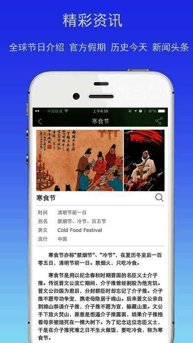 该软件支持中国、香港、台湾、新加坡、韩国、英国、美国等多个国家和地区的节假日信息,覆盖数百个节日,并配有详细解说,让用户足不出户也能了解世界各地的文化习俗。