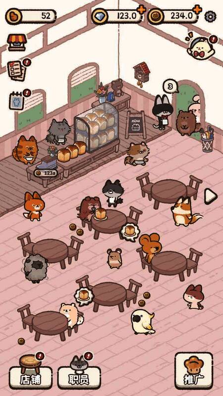 游戏采用了清新可爱的卡通美术风格,整体画面色彩明亮,细节处理精致,无论是甜品的质感还是猫咪员工的动作都生动有趣。配合轻快悦耳的背景音乐与舒适的音效设计,营造出一个轻松愉悦的经营氛围。