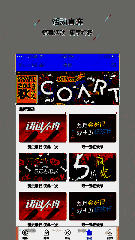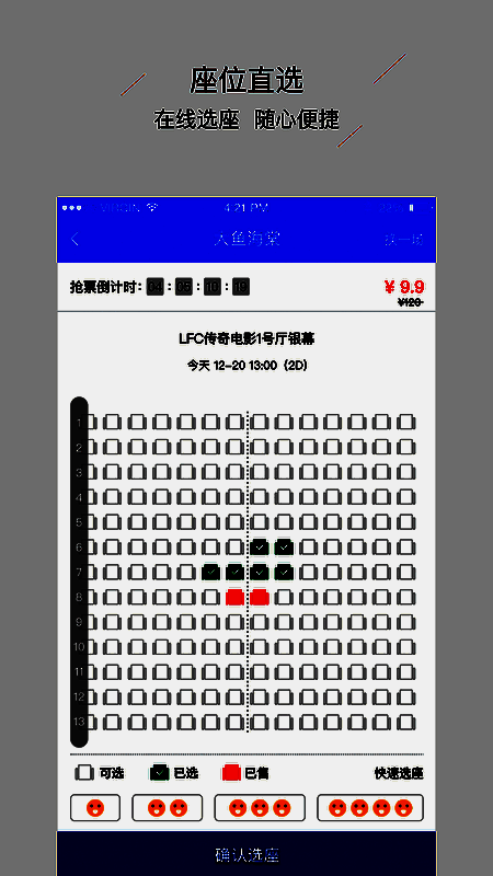 LFC传奇电影在功能设计上颇具用心,主打“活动直连、精彩直击、商城直购、优惠直达、座位直选”五大特色模块。无论是抢先观看新片预告,还是参与限时促销活动,亦或是在线兑换影院套餐,都能一键完成,操作流畅便捷。