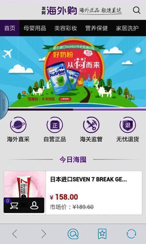 在如今这个全球购的时代,想要足不出户购买全球好物?《友阿海外购》作为友阿股份旗下的跨境O2O购物平台,为消费者带来了全新的海外购物体验。无论是母婴用品、美妆护肤、进口食品,还是家居日用和营养保健,用户都能在这里轻松选购。