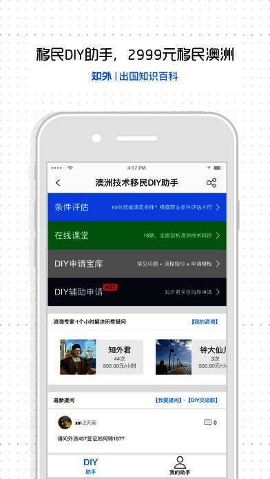 最新v1.2.5版本带来了多项优化:新增“知外严选”服务品牌,专注高成功率出国项目;“社区”模块迁移至首页,方便用户快速访问;同时修复了iOS 11系统下的若干BUG,进一步提升了使用流畅度。