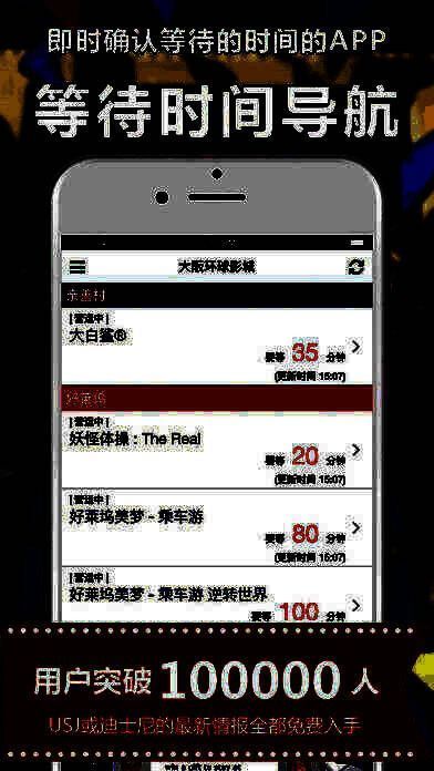 排队攻略软件界面展示,清晰显示各个游乐设施当前等待时间">