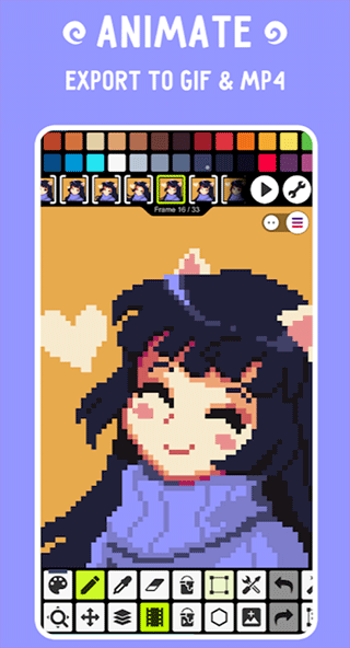除了基础绘图功能外,Pixel Studio还支持类似幻灯片的动画制作功能,用户可以制作出带有动态效果的小型像素动画,为创作增添更多趣味与成就感。
