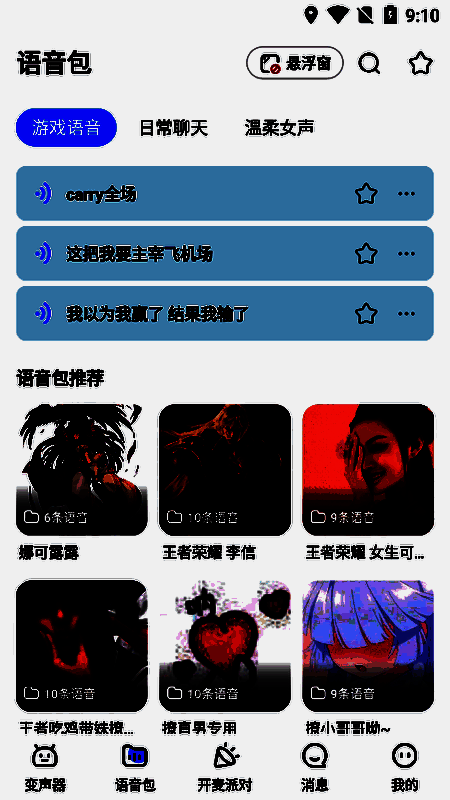 该软件支持实时变声功能,用户无需提前录制即可在通话过程中即时切换音色,同时提供悬浮窗口模式,方便在其他应用内随时调用,无需切换界面,真正实现即说即变、无缝衔接。此外,用户还可将喜欢的声音效果保存至本地,便于后续重复使用。