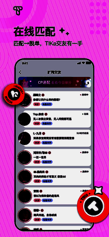 该App不仅支持便捷添加好友、自定义备注等功能,还内置多种互动小游戏和兴趣社区,帮助用户更快拉近彼此距离。无论是想寻找知己还是渴望脱单,TiKa语音都能为用户提供一个高效且有趣的社交平台。