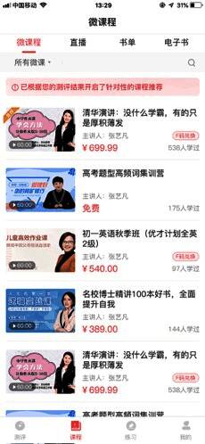 除了基础的电子书阅读功能外,《书袋阅读》还提供多项实用工具模块。例如测评功能可帮助用户了解自身阅读水平;微课堂和直播课则让用户随时获取专业指导;练习题模块更是强化理解与记忆的好帮手。此外,朗读、笔记、分页、字典等辅助功能也大大提升了阅读的便捷性与互动性。