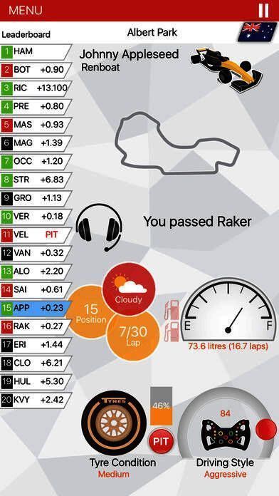 玩家不仅能实时观看比赛全过程,还能通过战术面板下达指令,应对突发状况如恶劣天气、车辆故障等。与车手默契配合,完成一圈又一圈的完美驾驶,是通往F1世界冠军的关键。