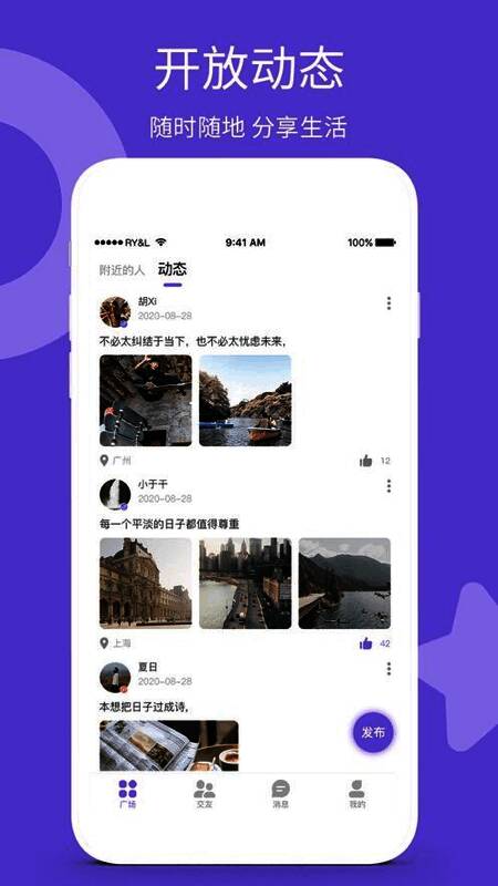 在约吖APP中,用户可以随时发布生活动态,记录精彩瞬间,并通过一键分享功能将内容推送到微信朋友圈,吸引更多朋友加入这个充满活力的社交圈。