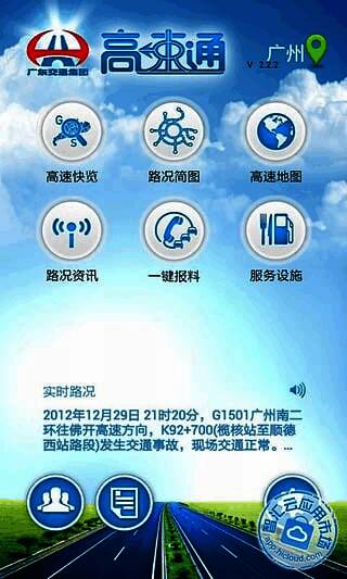 作为广东省交通集团有限公司高速公路监控中心官方出品的应用,《广东高速通》依托先进的交通信息系统与大数据分析技术,通过广播、同步、推送等多种形式,向用户提供包括路况直播、车辆救援、路线查询等在内的全方位服务。