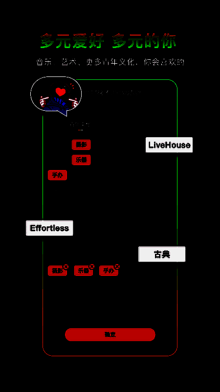《过电交友》鼓励用户根据自己的爱好加入兴趣圈,在这里你可以尽情展现个性,结识同样热爱生活、拥有独特审美的伙伴。无论你是音乐发烧友、电影爱好者,还是文艺青年,《过电交友》都能让你找到属于你的圈子。