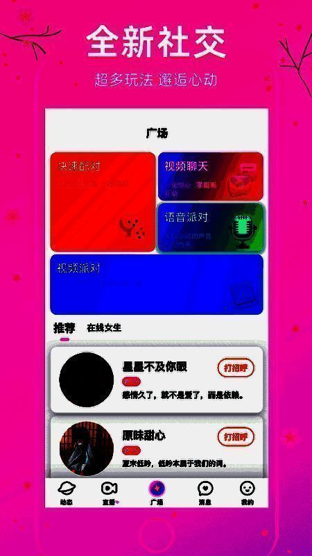 这款软件提供了丰富且灵活的交友渠道,支持同城定位功能,让用户能够轻松找到附近的心动对象。无论是随机匹配速配聊天,还是一对一深度语音视频互动,都能带来不一样的社交乐趣。同时,平台还会根据活跃度组织线下见面活动,让线上关系延伸到现实生活。
