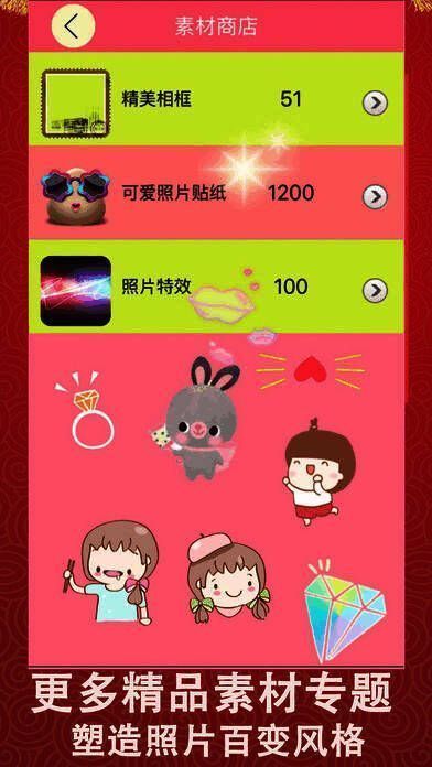 内置的素材中心包含大量相框、贴纸、特效和拼图模板,持续更新且全部免费使用。用户可以根据不同风格需求自由搭配,提升照片表现力。