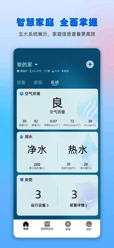 通过独特的场景化设计,用户可自定义"回家/离家"等智能模式。当选择"居家模式"时,空调自动调节室温、新风系统启动,营造舒适生活环境;而"离家模式"则会关闭非必要电器,同时启动安防监控,有效节能并保障家居安全。