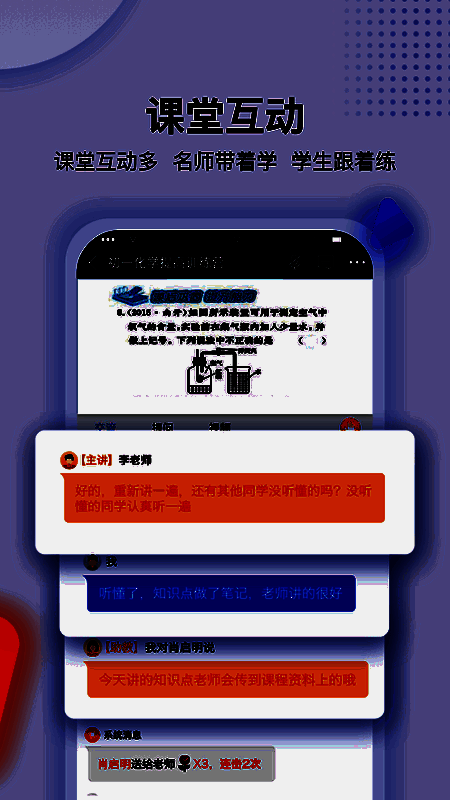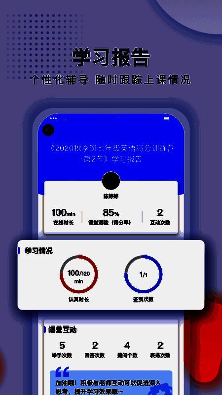 蓝叮课堂采用“直播+辅导”的双师教学模式,结合一线名师授课与辅导老师跟进,确保学生在课堂中能够获得即时反馈和个性化的指导。每节课还设有互动答题环节,有效提高学生的课堂参与度,帮助他们在轻松氛围中掌握知识。