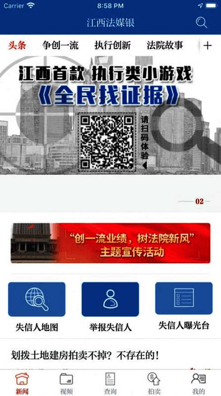 作为一款具有社会监督功能的应用,《江西法媒银》不仅提供新闻服务,还聚焦于打击失信行为。用户可在线举报“老赖”的财产线索,平台重点曝光涉及民生及金融案件的失信人员信息,有效推动执行效率提升,助力营造公平、诚信的社会环境。