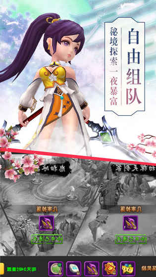 游戏采用最新3D粒子技术,打造出超越手游极限的华丽画面。高品质的光影效果配合真实的天气与四季变化,营造出一个栩栩如生的仙侠世界。