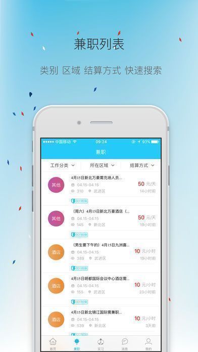 除了基础的兼职查找功能,《001兼职》还设有丰富的互动模块。用户可以通过地图定位查看附近的兼职机会,实时推送精彩活动信息,甚至邀请好友一起参与。此外,还能发布技能任务,利用自身特长接单赚钱,时间灵活、收益可观。简历编辑、余额提现等贴心功能也让操作更加流畅便捷。