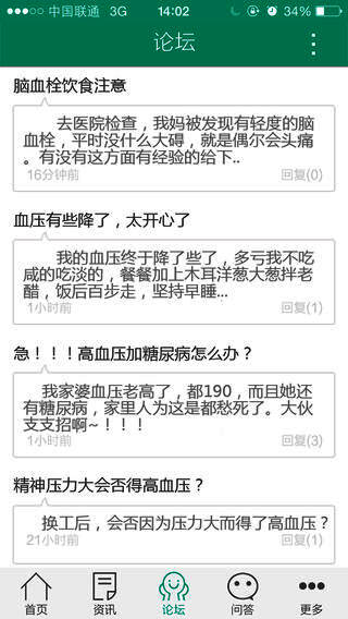 在病友论坛中,用户可以自由探讨高血压治疗过程中的饮食搭配、生活方式调整等内容;