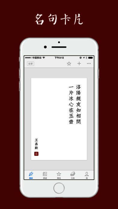 《西窗烛》以简约清新的界面著称,无广告打扰,让用户专注于内容本身。其卡片式摘录功能汇集了1600多条经典名句,便于随时翻阅与记忆。软件还收录了如《唐诗三百首》《宋词三百首》《给孩子的古诗词》等权威选集,是诗词学习与鉴赏的理想工具。