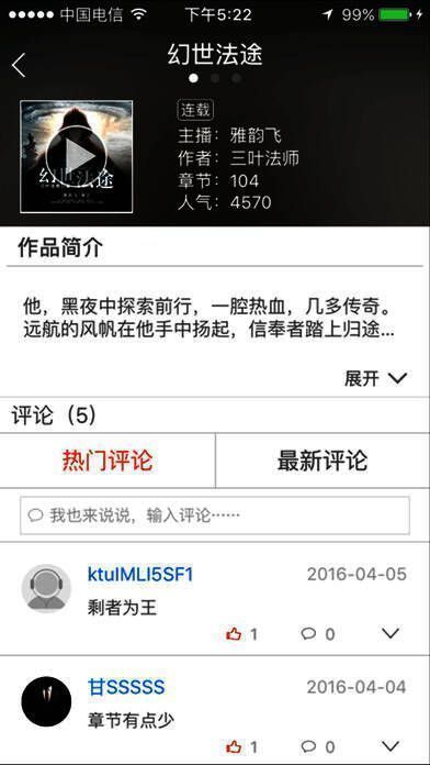 《酷听听书》汇集了来自起点中文网、纵横中文、创世中文网、潇湘书院等知名文学平台的热门作品,持续每月更新超过6000小时的全新内容。无论是当红影视剧原著,还是经典名作如《三体》《鬼吹灯》《三生三世十里桃花》等,都能在这里找到高质量的有声版本。
