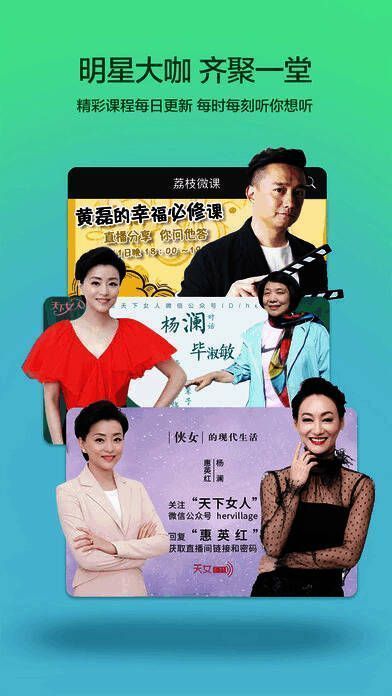 荔枝微课不仅仅是一个直播工具,更是一个融合明星讲师资源的高质量教育平台。杨澜、车晓等知名人士均在此分享独家见解,为用户带来权威又实用的内容。