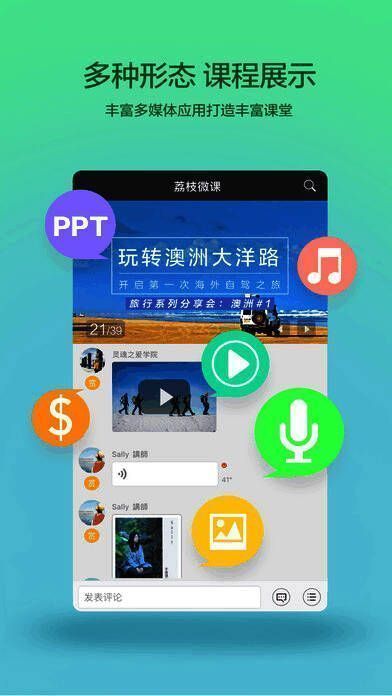 平台支持多种富媒体形式传播,包括语音、图片、PPT、视频、音频等,使课程内容更加生动、直观。