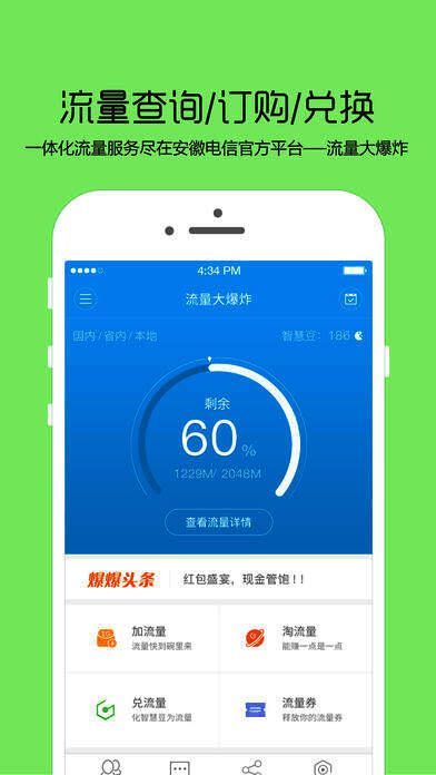 《流量大爆炸》是由安徽电信官方推出的手机应用软件,专为安卓用户打造,集流量查询、免费兑换、优惠套餐订购于一体。作为一款用户量突破百万的流量管理客户端,它不仅提供精准的流量监控服务,还通过签到、分享、任务等方式让用户轻松获取额外流量,真正实现“流量自由”。
