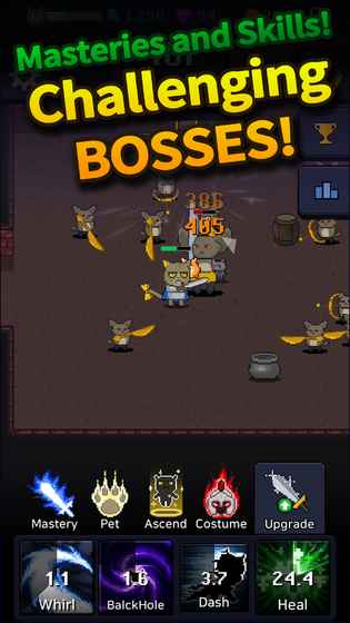 在《猫塔》的世界中,玩家将带领自己的猫咪勇者深入地牢,向邪恶的老鼠发起进攻。游戏采用自动战斗机制,猫咪会自主攻击敌人,玩家只需通过升级、进化、装备技能等方式不断提升战斗力,便能一路过关斩将,挑战各类BOSS。
