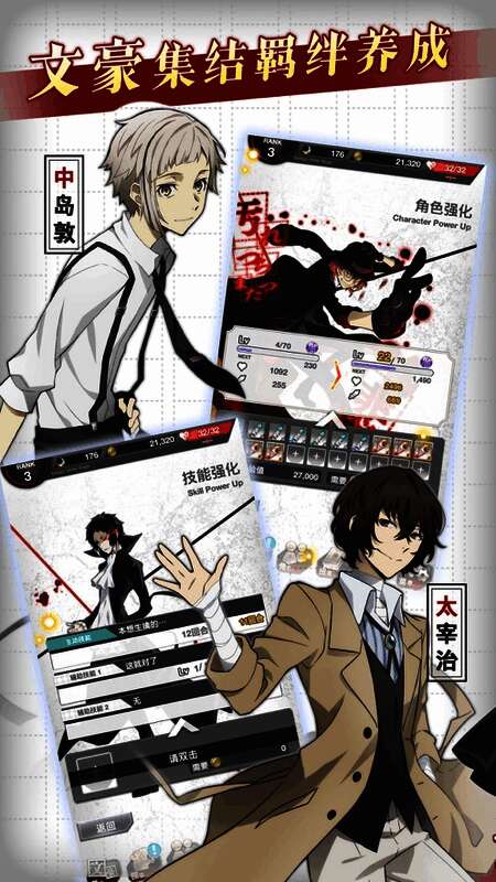 游戏中集结了众多标志性角色,包括中岛敦、太宰治、芥川龙之介、江户川乱步等,均由原班声优倾情配音。玩家可以自由组建队伍,通过羁绊养成系统提升角色之间的协作能力,打造属于自己的最强战队。