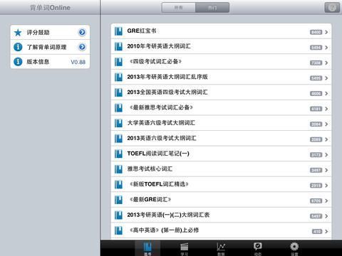 《背单词Online HD》是专为iPad用户打造的版本,相较于iPhone版本,其最大的优势在于可以同时显示两个视图,使用户在背诵过程中能获取更多信息,提升学习效率。无论是浏览单词详情还是切换复习模式,都能更加流畅自如。