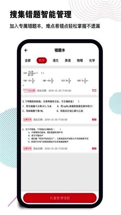 除了日常学习之外,《名校学习》还具备错题本功能,自动归纳总结常见错误知识点,并推送针对性练习题,帮助学生查漏补缺,强化记忆,有效避免重复犯错。