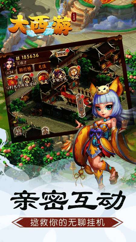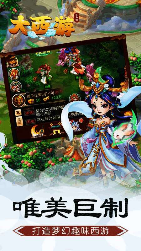 《大西游》是一款以中国古典名著《西游记》为背景的Q萌奇幻冒险手游,结合了经典神话与现代回合制策略玩法。游戏采用清新可爱的卡通画风,搭配轻松挂机的游戏机制,让玩家在体验九九八十一难取经之路的同时,享受自由社交和跨服对战的乐趣。自上线以来,《大西游》凭借其丰富的系统设定和趣味玩法,吸引了大量喜爱国风题材与休闲策略类的玩家。