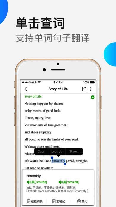 软件内置智能口语评分系统,支持逐句跟读并逐词打分,有效提升口语表达能力,攻克“不敢开口”的难题。