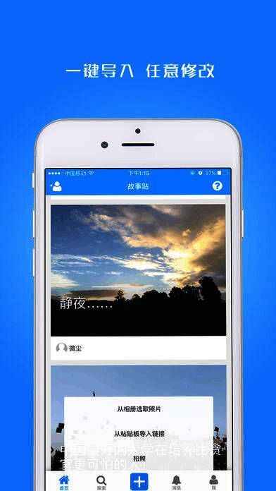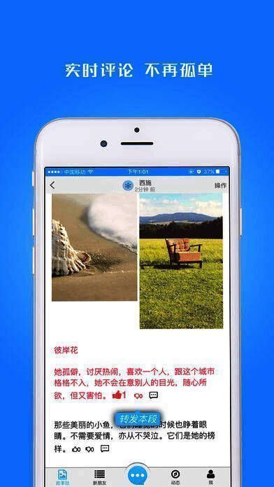在快节奏的现代生活中,你是否渴望找到一片宁静的心灵栖息地?《故事贴》就是这样一款专注于图文创作与阅读的社交平台,它不仅让你自由排版、编辑属于自己的故事,还能在这里结识志趣相投的书友,一起品味文字的魅力。无论你是喜欢写日记、分享美文,还是热爱阅读他人的精彩人生故事,《故事贴》都能为你提供一个温暖而有深度的交流空间。