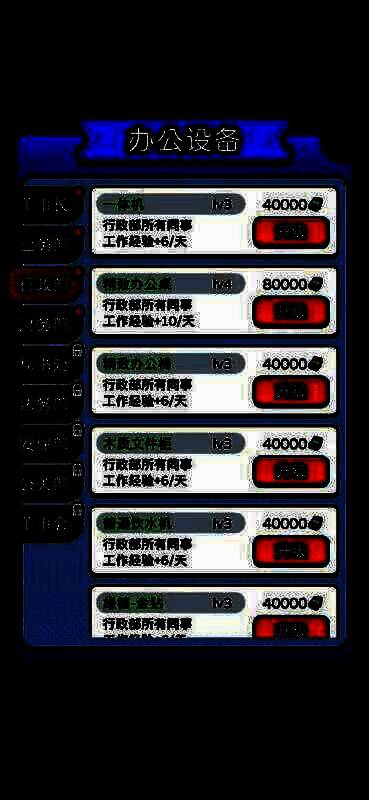 游戏提供了多个核心玩法模块,包括公司部门管理、人才引进、资产管理以及员工培训等环节。