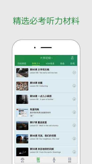 【丰富听力资源】涵盖中考、高考、四六级、专四、新概念、雅思、托福等多种权威考试真题,并引入影视片段与英文歌曲,让学习更有趣味性;