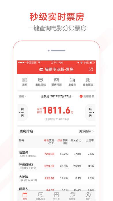 猫眼专业版提供秒级更新的票房数据,让使用者可以随时掌握每部影片在各大影院的实时表现。从大盘走势到单日票房排行,所有数据一目了然,帮助制片方、发行方及时调整策略,抢占市场先机。