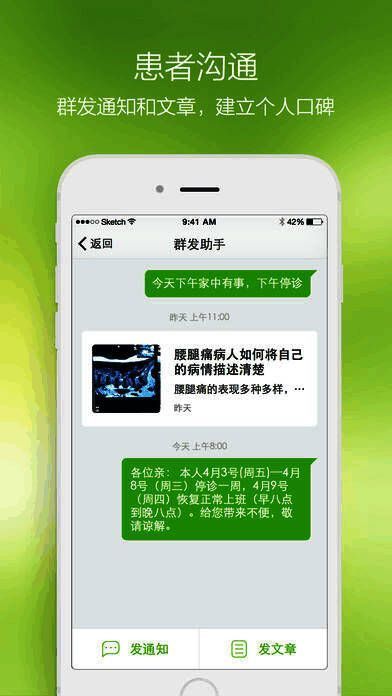 软件不仅为医生搭建了交流平台,便于同行间学术探讨与经验分享,还能有效积累患者资源,便于后续随访跟踪。同时,医生可通过群发通知、发布文章等方式增强与患者的互动,塑造良好的口碑形象。