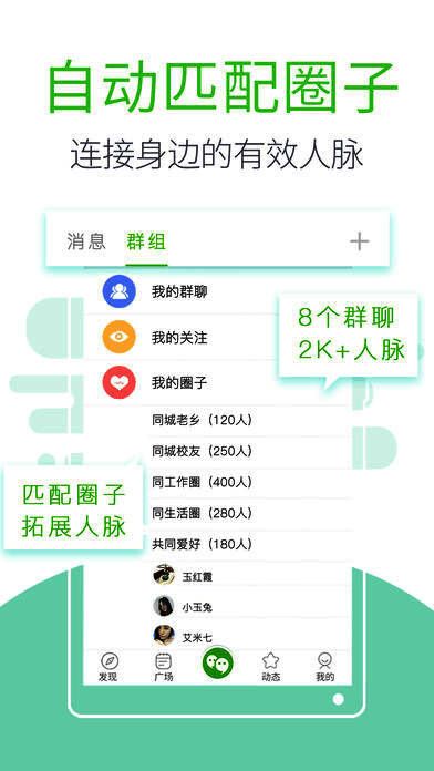 突破熟人圈子,网聚1.5度人脉,脉脉相连,劳务圈,兴趣圈,商务圈,一网打尽;