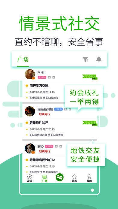 单身汪爱情介绍所,青年新公社,专注于真实情景式社交,让社交回归现实;包括同行交友、拼车交友、友情邀约、活动聚会等;直约不瞎聊,多对多选择,约会就是这么简单!上下班地铁公交同行交友,安全免费,高效省事不尴尬,是最直接有效的见面相亲方式,相亲找老乡才靠谱;