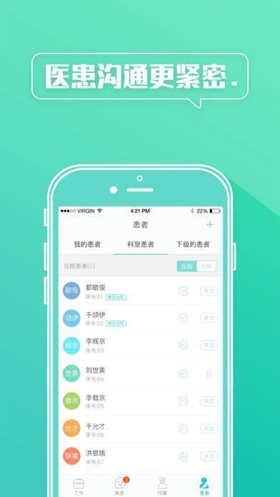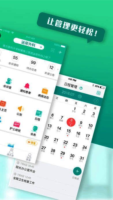 “小科秘”专注于医院科室的移动管理需求研究,基于科室行政、患者管理、科际拓展进行交互架构设计,帮助科室主任和护士长在移动环境下实施通告、审批、排班、查房等工作也为医生护士们提供了如患者管理、病床管理、病情管理、病情互通等高效协作工具。在科室带头人、医护同事、住院及出院患者之间搭建起一个需求互补、友好生态的互动桥梁。