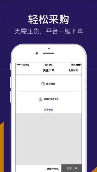 1、轻松采购,无需压货,平台快捷下单,海外仓闪电无痕代发。