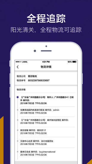 2、全程追踪,阳光清关,全程物流可追踪,实时掌握包裹。
