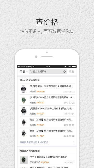 最专业的二手奢侈品自由交易平台,我要中检、实物鉴定、查二手价震撼来袭。不颠覆•不创新,鉴名品•不求人,您的私人鉴定专家,最权威鉴定师-徐步天亲自坐镇,海量二手成交价等你来查,借你一双慧眼,从此鉴定估价不求人更,专业的二手奢侈品交易鉴定养护平台,网罗全球二手奢侈品汇聚于掌中,足不出户购好品,买优惠闲置奢侈品上--典当圈奢侈品APP。