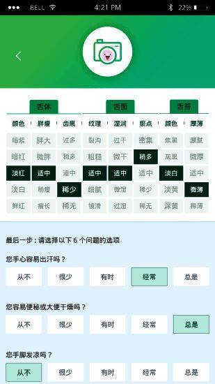 1、舌诊功能新增问卷调查步骤,帮助匹配体质,诊断结果更准确;