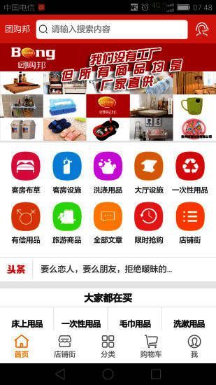 团购邦APP是创富科技旗下的酒店用品团购软件,通过对团购邦商城亿万种商品进行筛选和归类,每天为您提供多款商品,